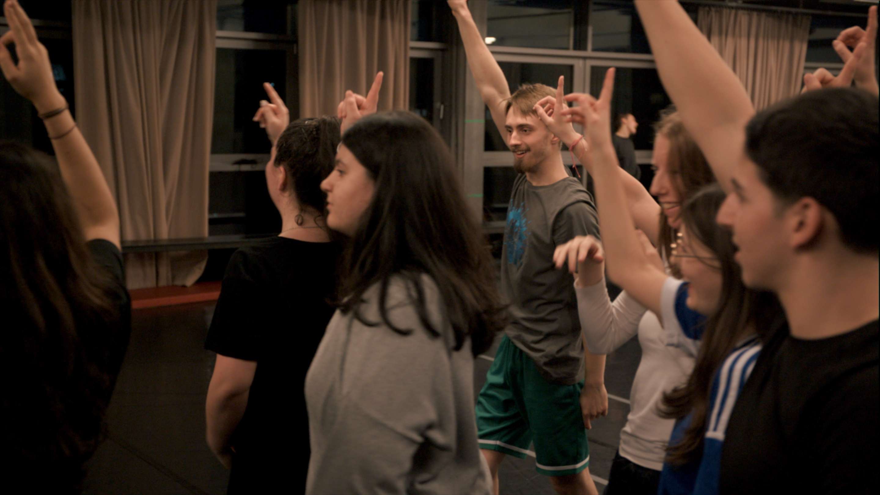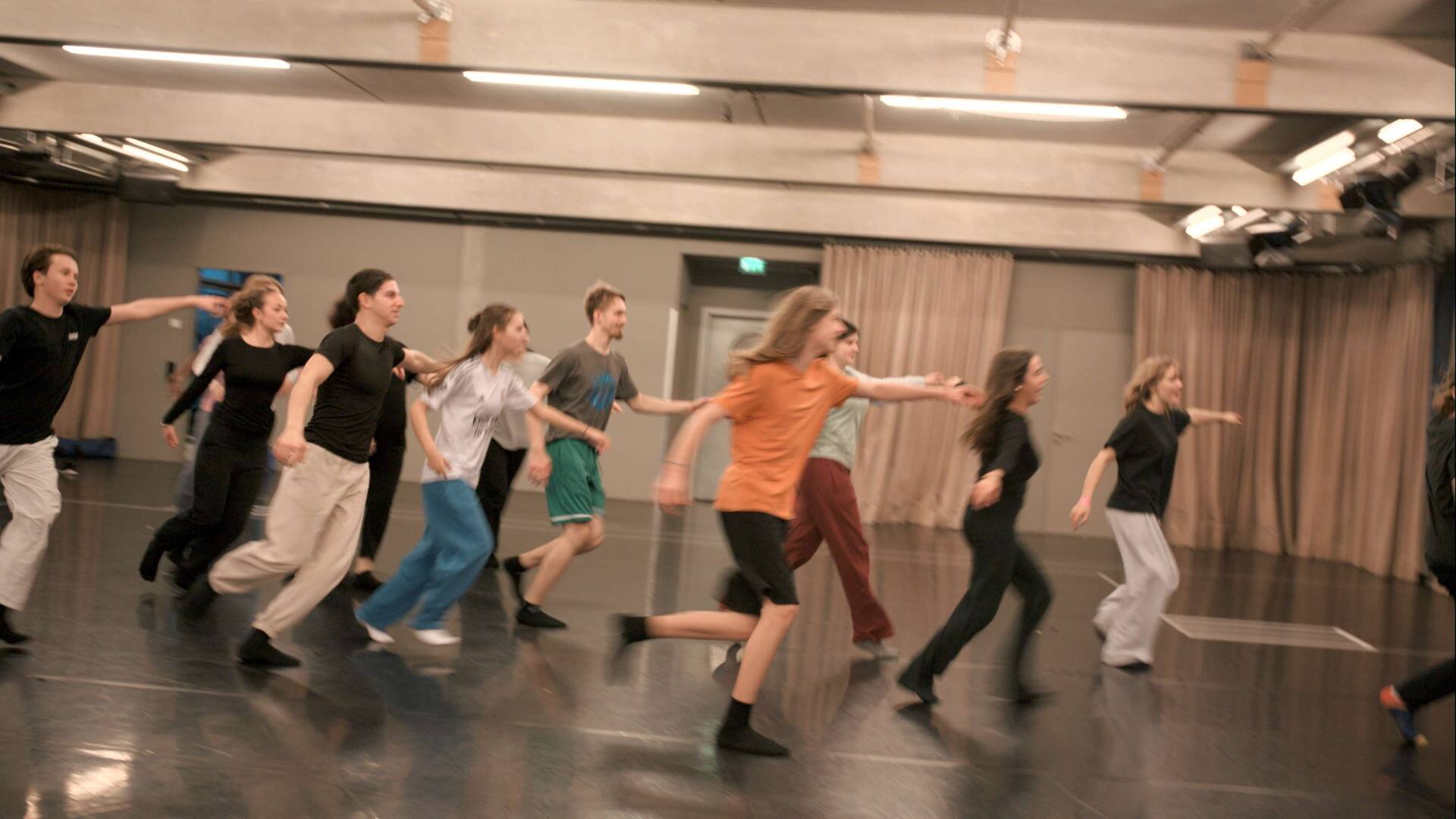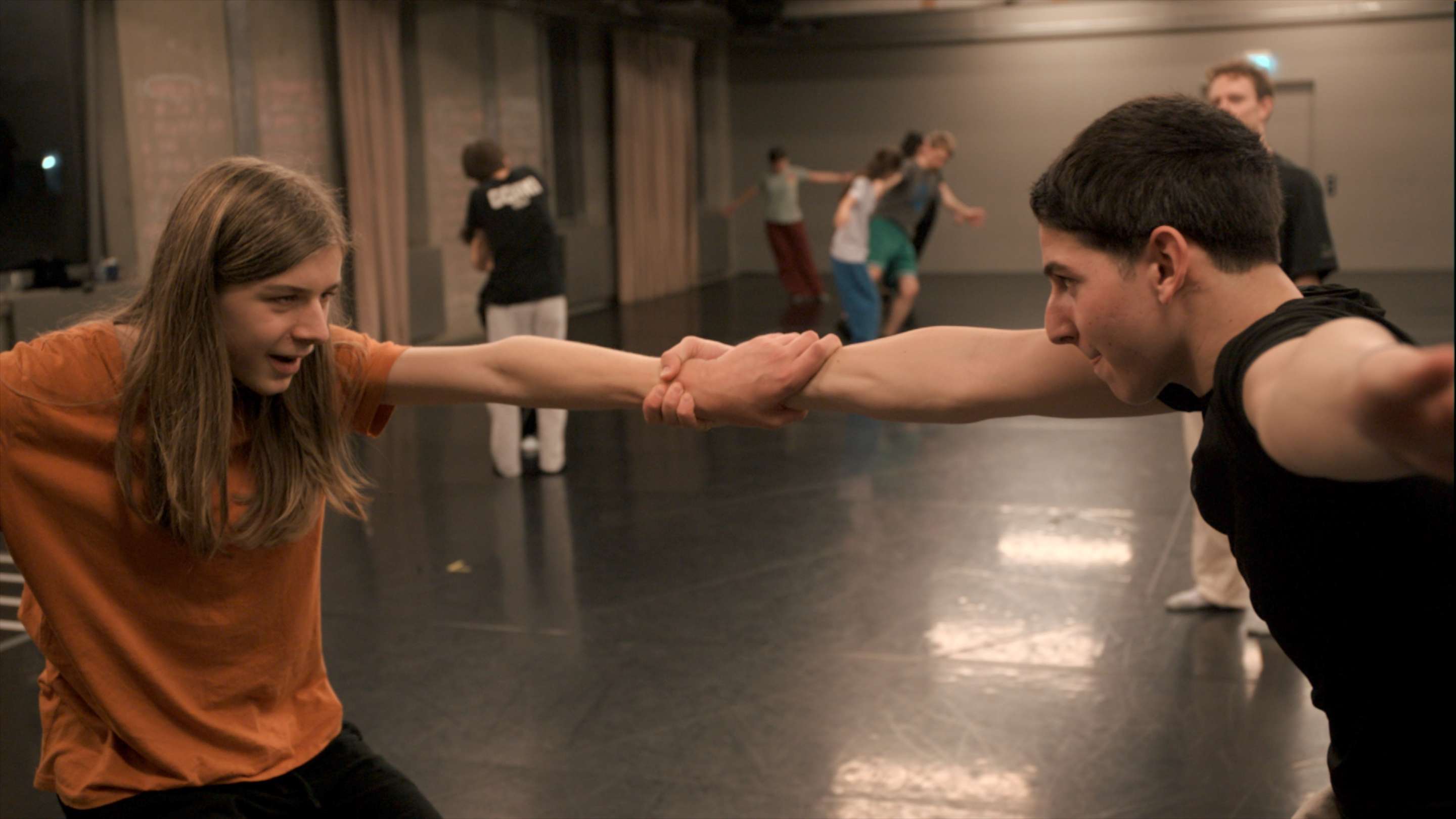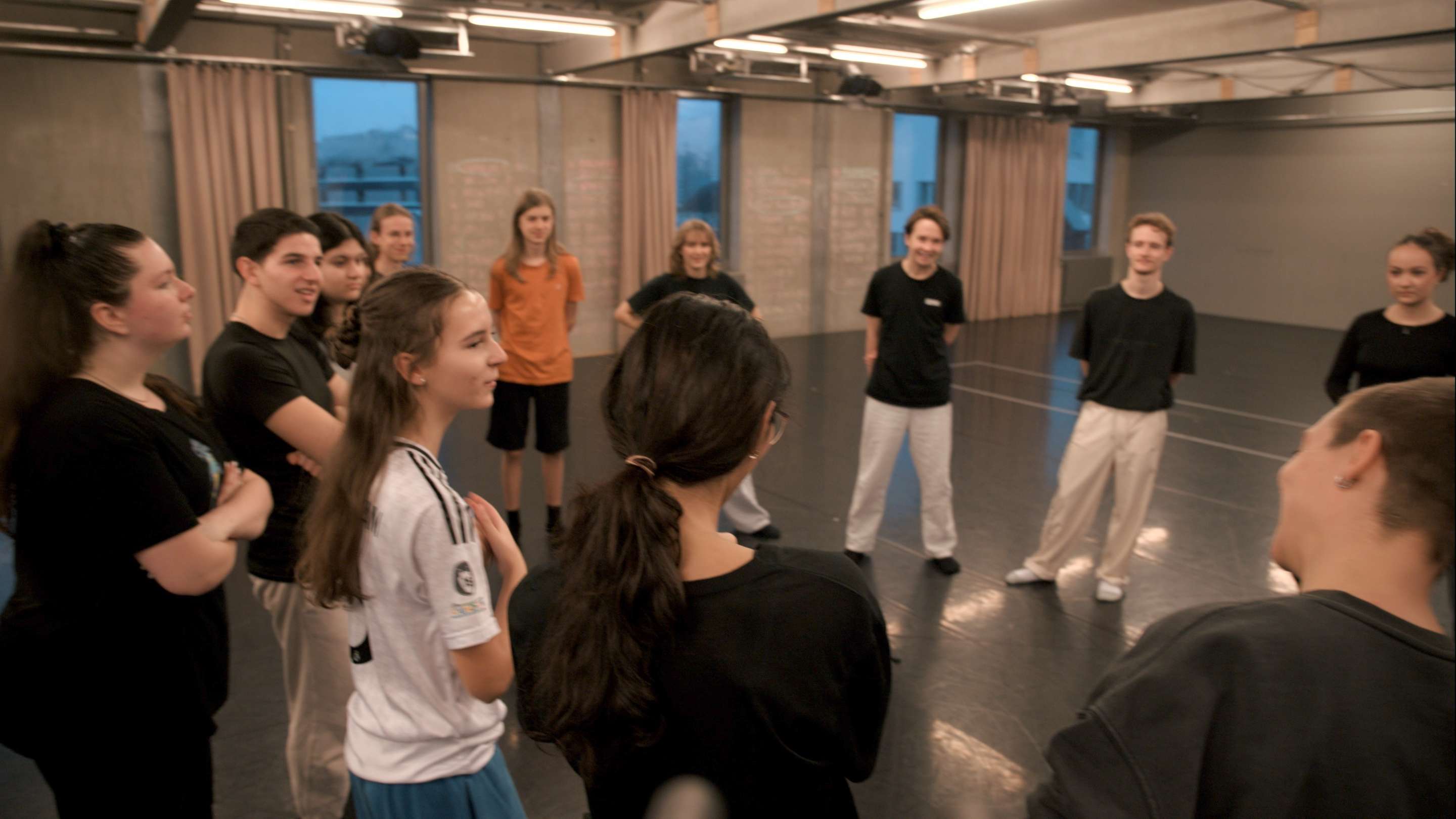 This workshop provided an exciting opportunity for an exchange between the Move Your Kiez - Spandau group and the young people from Sasha Waltz & Guests' children's and youth dance company. The workshop served to get to know each other, to gain insights into the everyday rehearsals of the children's and youth dance company and to get moving together.