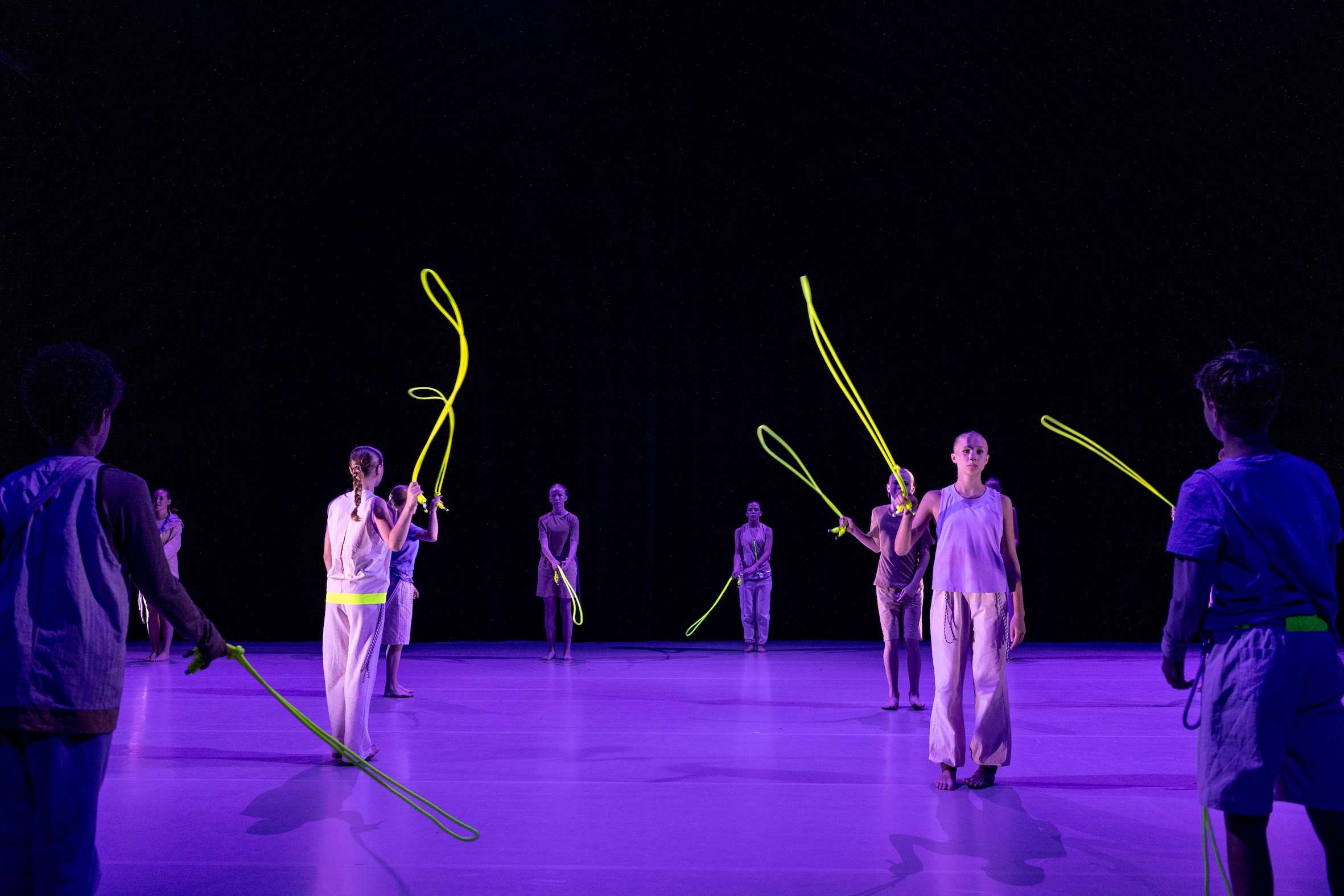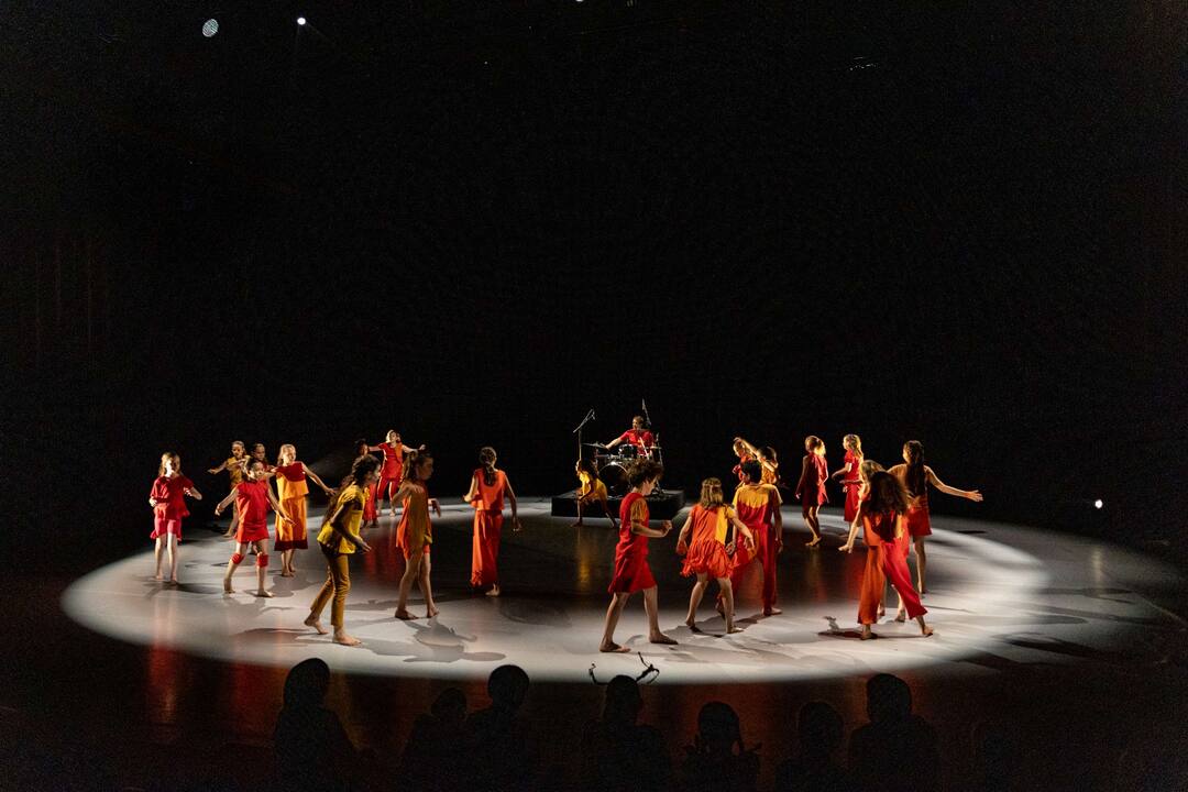 Zur Feier des 15-jährigen Jubiläums der Kinder- und Jugendtanzcompany von Sasha Waltz & Guests konnte dann endlich auch wieder das jährliche Showing im Radialsystem stattfinden, für das die Kinder und Jugendlichen ein Programm voller Vielfalt und Kreativität erarbeiteten: Die Kinder der Gruppe 2 (9-11Jahre) erzählten in »Hin und zurück« von ihren Erfahrungen mit der Natur, die sie während der Pandemie gesammelt haben. Und die Jugendlichen der Gruppen 3 (11-14 Jahre) und 4 (14+ Jahre) tanzten erstmals gemeinsam auf der Bühne und zeigten ihre Version von Sasha Waltz‘ Choreographie mit dem Titel »In C –nächste Generation« sowie die neue Arbeit »TEXERE«, die 2023 zum 10. Tanztreffen der Jugend der Berliner Festspiele eingeladen wurde.
