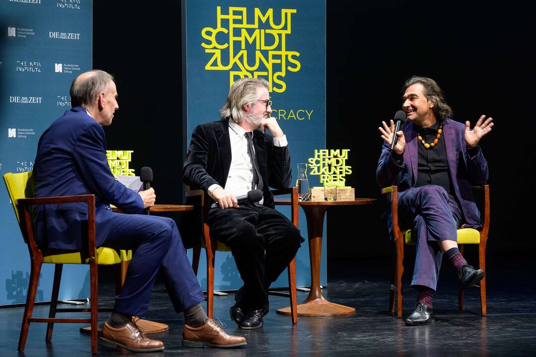 Die Preisverleihung im Hamburger Thalia Theater wurde gerahmt von einem Ausschnitt aus »In C« von Sasha Waltz & Guests, einem Gespräch zwischen dem Journalisten und Jury-Vorsitzenden Uwe Jean Heuser, Installationskünstler Ólafur Elíasson und Jochen Sandig, sowie der Lichtinstallation »Your Pluralistic Coming Together« von Elíasson, mit der Tänzer:innen der Compagnie improvisierend interagierten. Die Laudatio hielt Hamburgs Senator für Kultur und Medien Carsten Brosda. Der Abend fokussierte die Notwendigkeit, neue, zukunftsorientierte Ansätze für unser demokratisches Denken und Handeln zu finden, und betonte die wichtige Rolle, die Kunst und Kultur dabei zu kommt: Sie ist in der Lage, neue Möglichkeitsräume zu schaffen, in denen andere Perspektiven und Lösungen entwickelt und erfahrbar werden können. Nach einem Get-together auf der Bühne klang der Abend bei einer After-Show Party für alle Gäste unterm Dach des Thalia Theaters aus.
