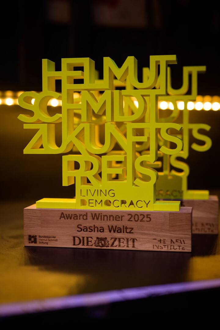 Die Choreographin, Tänzerin und Regisseurin Sasha Waltz wurde am Donnerstag, dem 22. Mai 2025 gemeinsam mit dem dänisch-isländischen bildenden Künstler, Designer und Architekt öffentlicher Räume Olafur Eliasson mit dem Helmut-Schmidt-Zukunftspreis 2025 geehrt. Beide wurden für ihre kulturellen Innovationen gewürdigt, mit denen sie sich für den Schutz von Demokratie und Natur sowie für die liberale Gesellschaft einsetzen. Erstmals wurden zwei Persönlichkeiten aus Kunst und Kultur mit dem Preis ausgezeichnet. Die Preisverleihung fand im Thalia Theater in Hamburg statt.