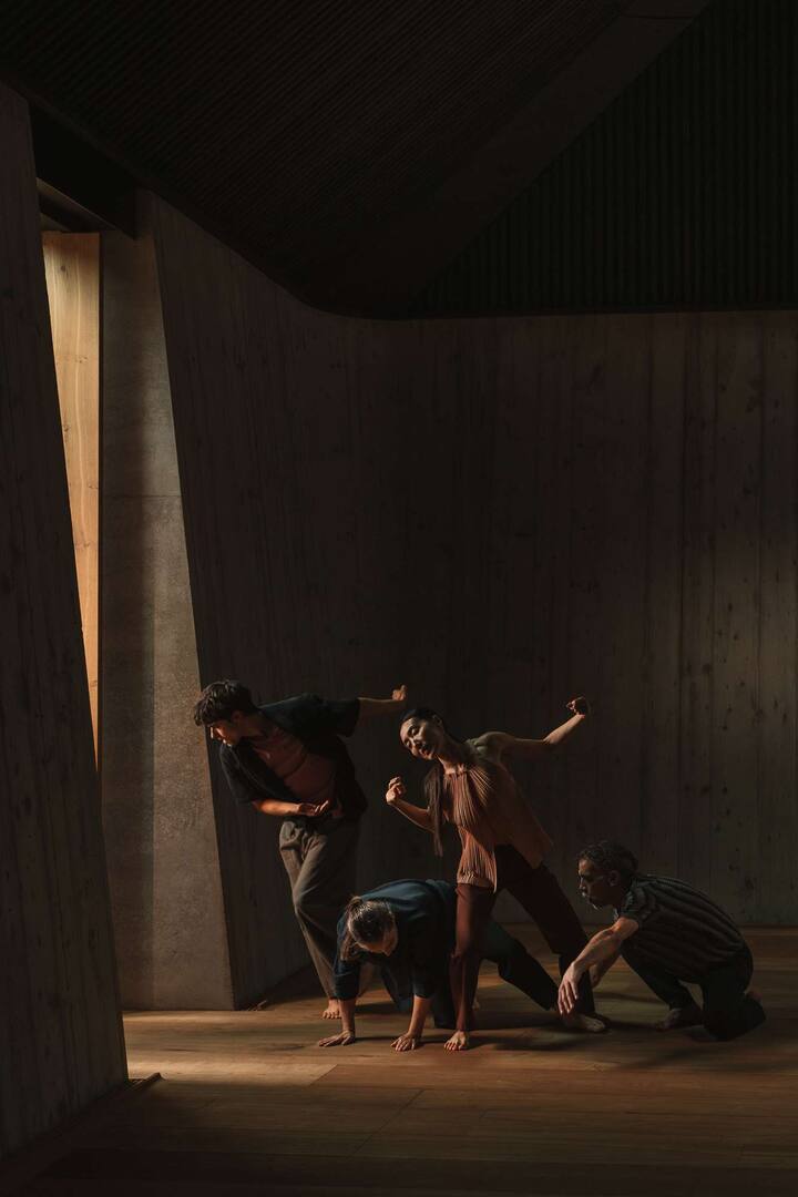 Indem sie die gesamte Architektur des Reethauses bespielen, inklusive des Innenraums, des Foyers, der Nebenräume, der Terrasse sowie der Umgebung, laden die Tänzer:innen zu einer lebendigen Begegnung mit der Gegenwart ein. Sie reagieren auf alles, was sie zu dieser Zeit und an diesem Ort wahrnehmen – ein radikales Bekenntnis zur Achtsamkeit.